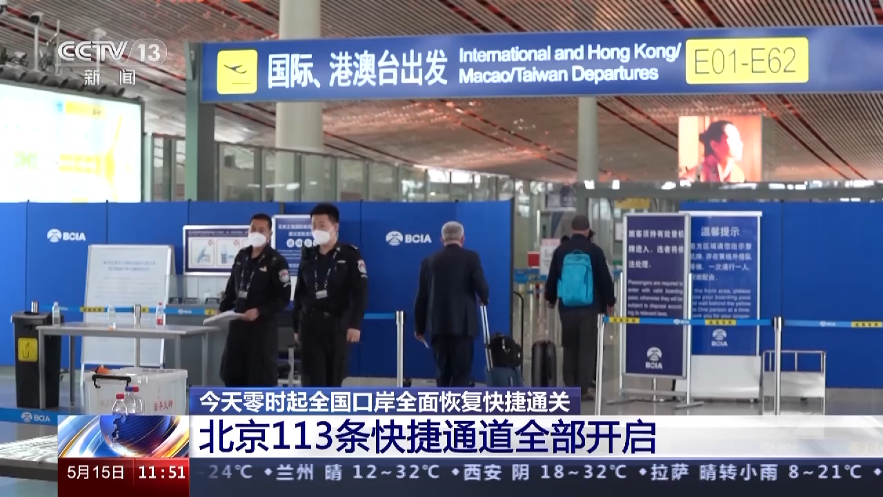 为进一步保障便利中外出入境人员往来,全国各个口岸从今天(15日)零时起全面恢复快捷通关。