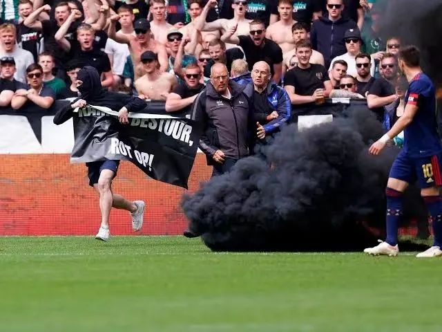 综合法新社、路透社报道,在比赛开始6分钟后,当阿贾克斯的球员准备开角球时,爆炸物落进球场,导致比赛第一次中断。裁判员将两队球员带离球场。不过,当他们返回时,有人再次投掷爆炸物,导致比赛被叫停。此外,还有一名戴着黑色头套并举着侮辱格罗宁根俱乐部管理层横幅的球迷躲过保安人员跑进球场,随后被保安人员制服带离。14日晚些时候,阿贾克斯俱乐部在其官方网站上表示,比赛的剩余时间将在当地时间16日下午没有球迷观赛的情况下进行。