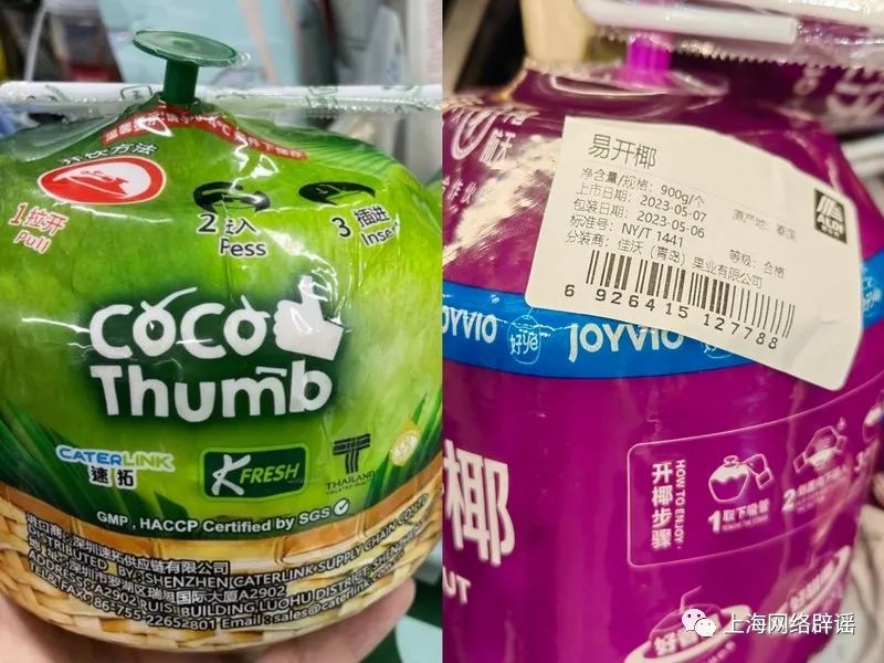还有店员向记者推荐了价格更高的“椰子蛋”,即剥了一半皮的椰子,店员称“椰子蛋”没有开口,用吸管一戳就能把椰肉戳破,更卫生一些。记者看到部分“椰子蛋”上的确标注了生产日期和保质期(3天),看上去比预开口椰子更正规一些,却又少了上市日期。而关于“为何预包装的椰子类产品标识不同”的问题,店员都无法作答。