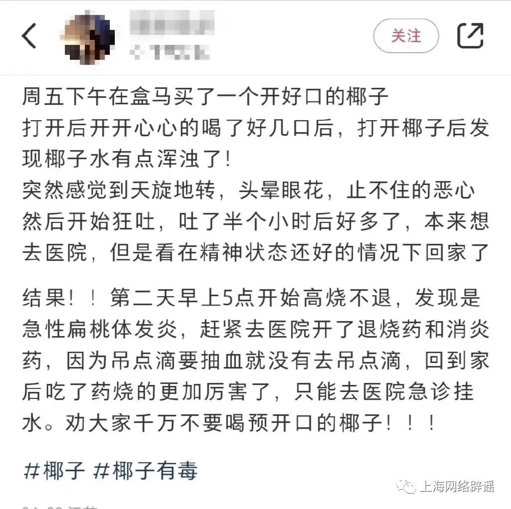 许多人表示这种症状并非个例:“我朋友喝了变质的椰子水后就吐了”“喝过之后头特别疼,胃里翻江倒海”“椰子的保质期很短,预开口非常不卫生”。