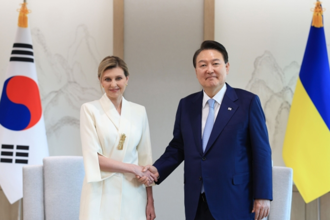 而据韩联社16日早些时候报道,乌克兰总统泽连斯基的夫人叶莲娜·泽连斯卡娅当天在接受该媒体书面采访时称,有意正式邀请韩国总统尹锡悦夫妇访问乌克兰。