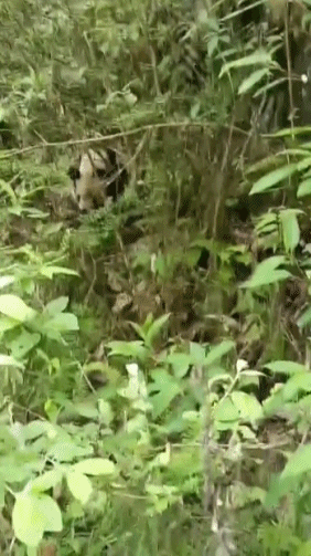 5月15日,四川绵阳北川羌族自治县马槽乡花桥村的三名护林防火巡护员巡山时,发现一只在野外活动的大熊猫。巡护员在确认这只大熊猫没有攻击性的前提下用手机近距离拍下了大熊猫的可爱画面。