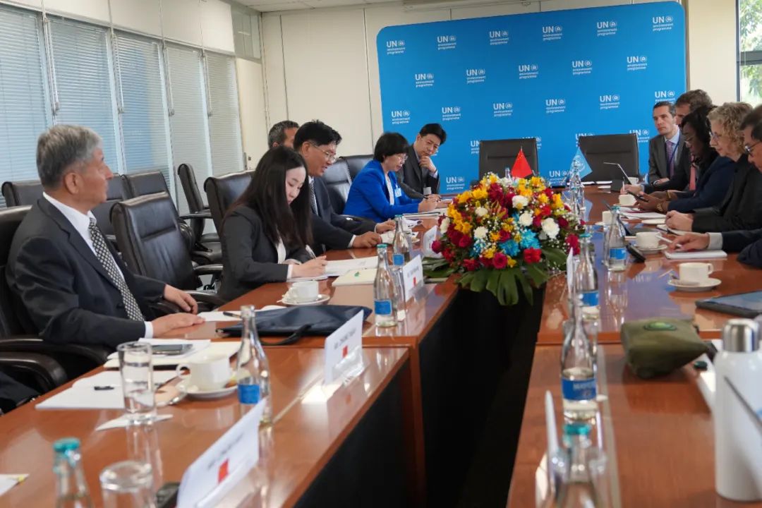 中国驻肯尼亚大使兼中国驻联合国环境署、人居署代表周平剑,生态环境部核安全总工程师、办公厅主任田为勇以及国际司、对外合作与交流中心主要负责同志出席会议并陪同会见。