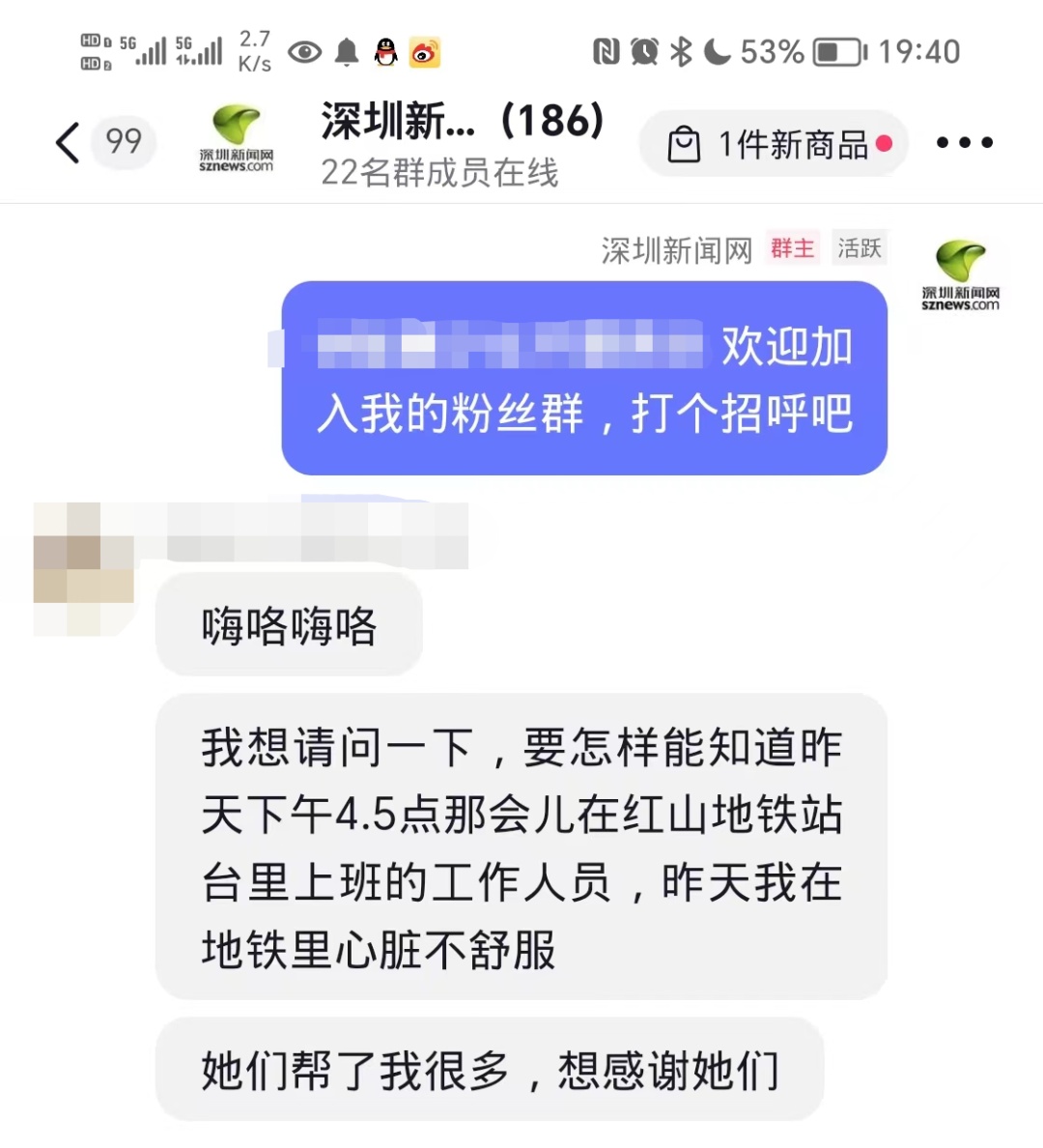 “我想请问一下,要怎样能知道昨天下午4、5点那会儿在红山地铁站台里上班的工作人员,昨天我在地铁里心脏不舒服。她们帮了我很多,想感谢她们。”