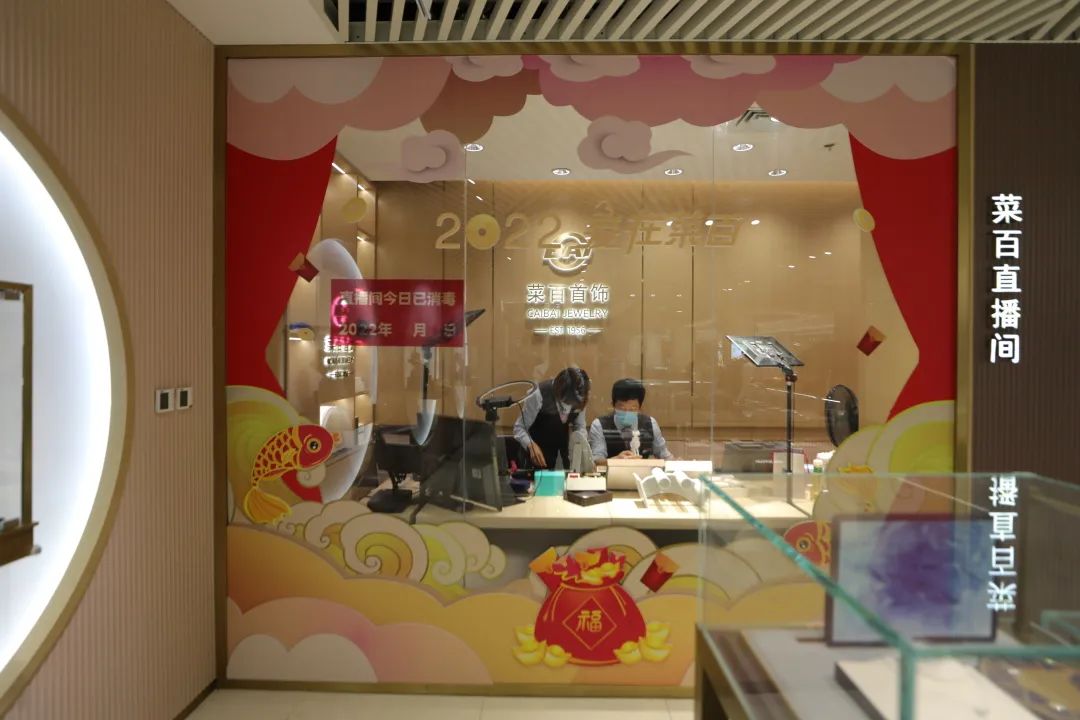 近年来,菜百股份以主题自播+专家直播,文化推广+品质保障为特色的“菜百股份直播基地”建立了27个直播间,自主培养近百名兼具黄金珠宝顾问、博物馆讲解员、主播于一身的团队。