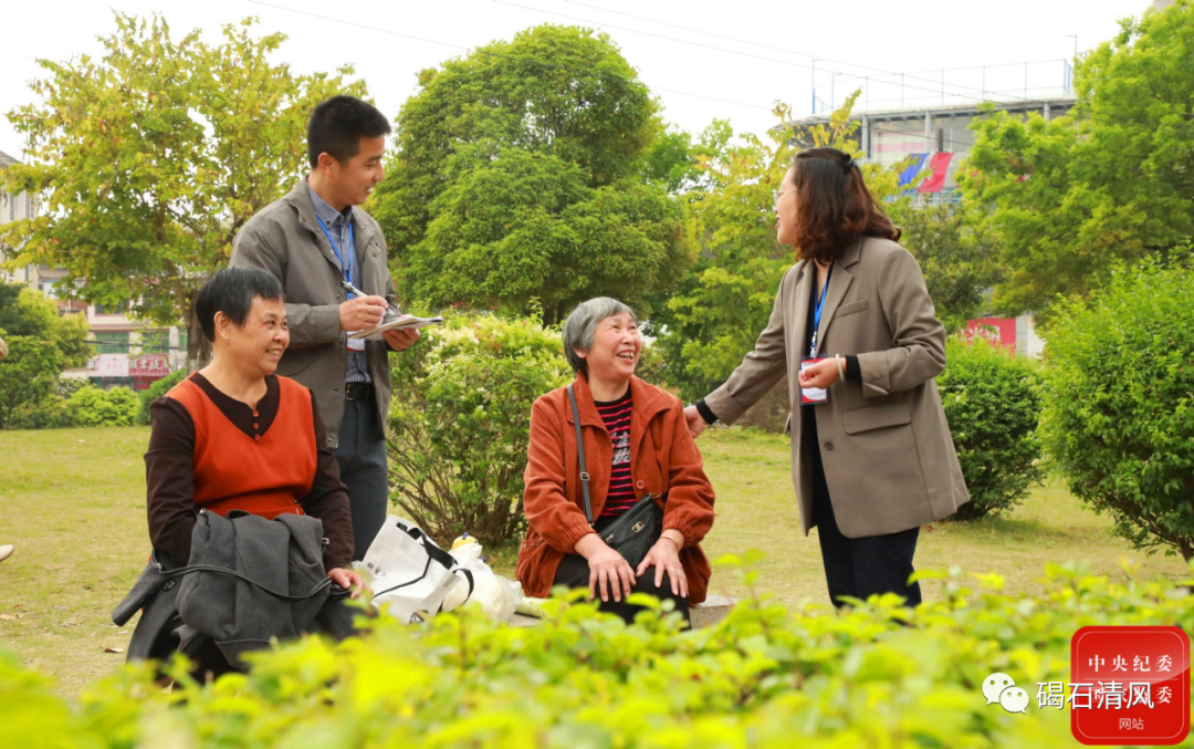 江西省定南县纪检监察干部以问题为导向,通过谈心谈话、随机走访等方式,深入一线“解剖麻雀”,力求“搞清楚问题是什么、症结在哪里”,从而把调查研究成果转化为推进工作、战胜困难的实际成效。图为定南县纪检监察干部通过随机走访了解群众对解决医疗教育等民生领域“微腐败”的意见建议。(江西省定南县纪委监委 甘士莲 摄)