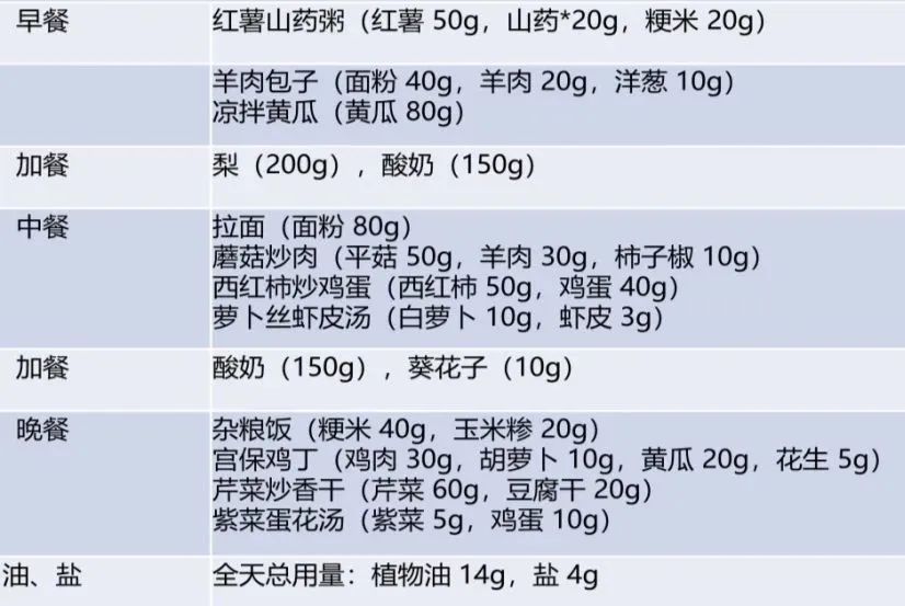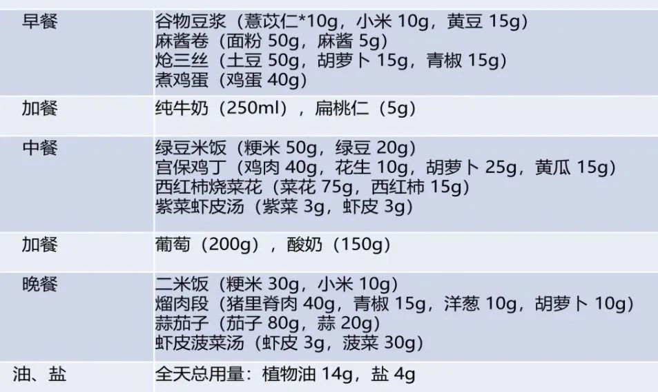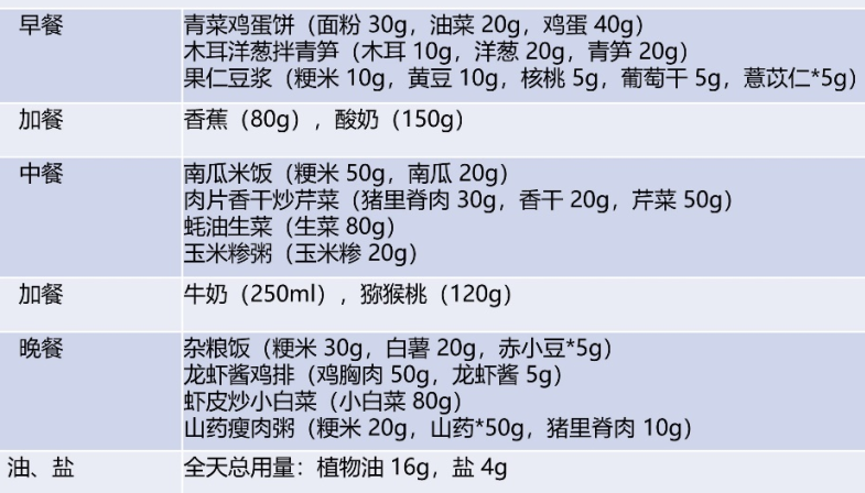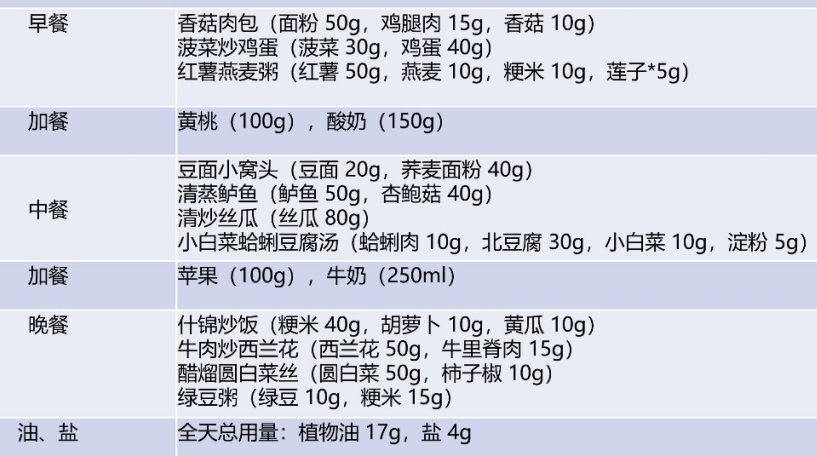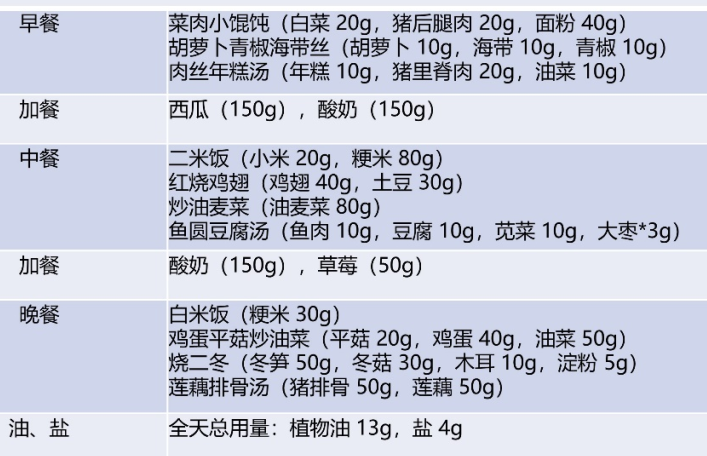 此外,另附上《指南》中中部地区的儿童食补食谱,也可以作为给孩子做营养餐的参考。