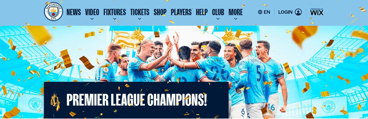 曼城俱乐部官网首页发布庆祝球队夺冠的消息。