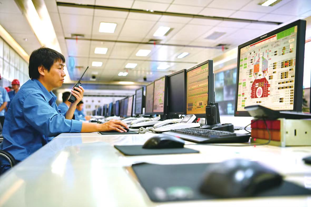 首钢京唐三高炉主控室操作人员在认真指挥炼铁生产。杨立文摄