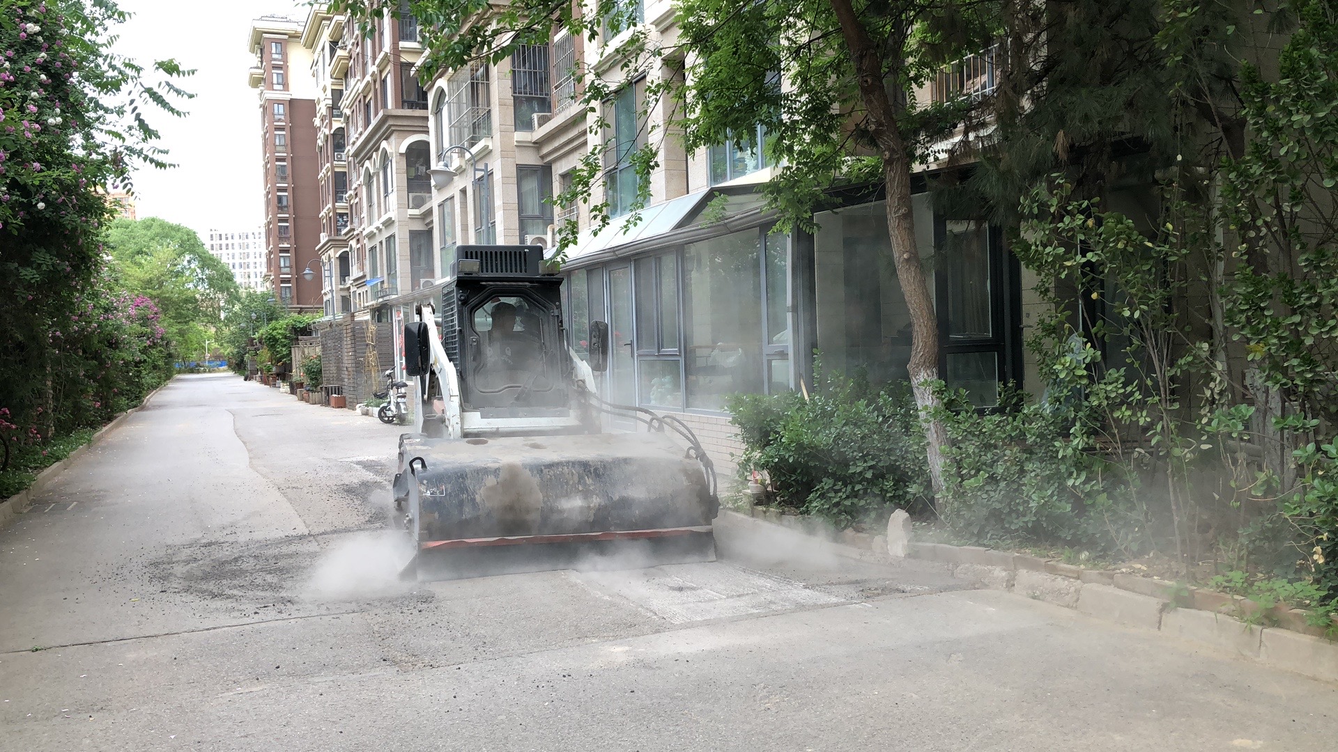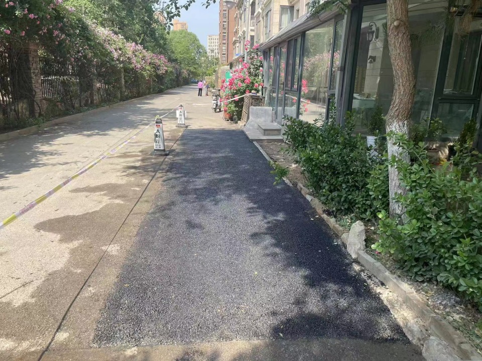 恰巧,此时小区西门附近的部分路面正在施工,王春艳便借机与施工方协商,希望专业工人能用专业设备也把居民家屋外的路修复一下,得到了施工方和物业的支持。