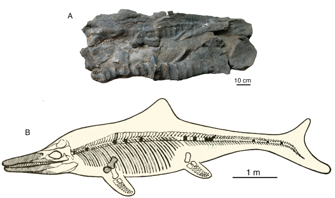 喜马拉雅鱼龙化石及复原图。(中国科学院古脊椎动物与古人类研究所供图)