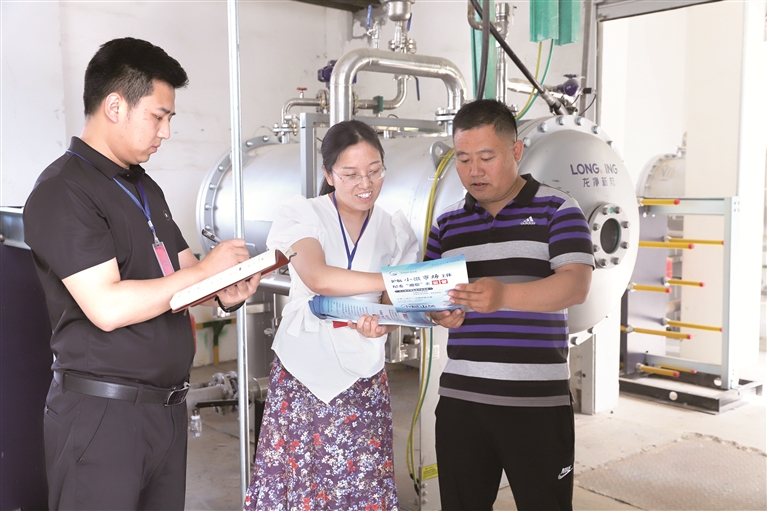 聊城市东阿县纪委监委开展护航优化营商环境专项行动,通过设立营商环境监测点、“码上监督”等方式,找准问题、推动解决问题,助力企业发展。图为近日,该县纪委监委工作人员到东阿县清源污水处理有限公司了解企业发展情况并发放监督宣传页。丁华鹏 摄