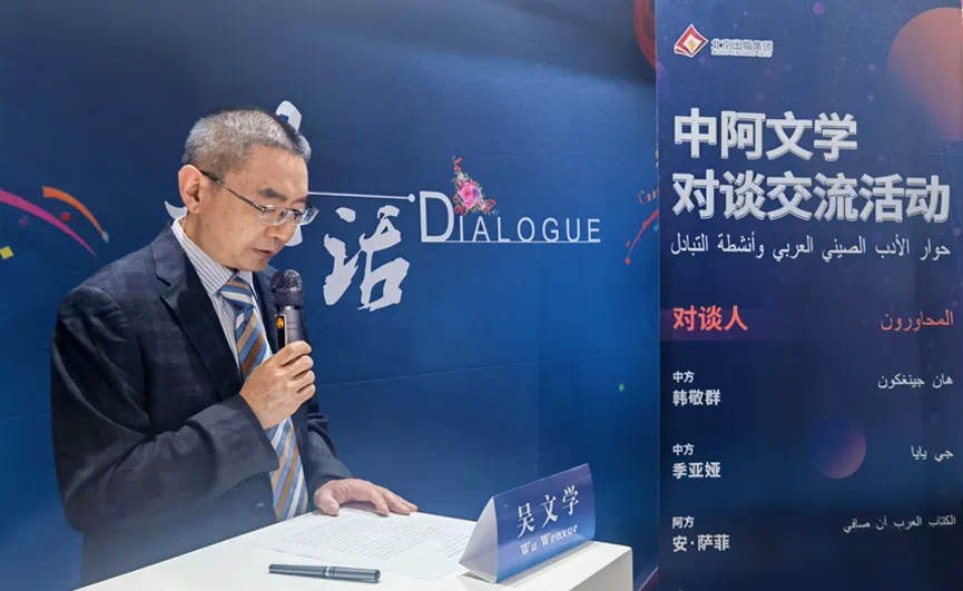 当地时间5月22日下午,吴文学作为中国出版人代表出席“中阿文明对话—中阿出版文化交流合作论坛”并做主旨发言,阿拉伯出版商协会秘书长巴沙尔·沙巴鲁,阿布扎比阿拉伯语言中心执行主任、阿联酋书展主席赛义德·哈姆丹等嘉宾出席。吴文学在发言中回顾了中国和阿拉伯联合酋长国的文化交流历史,阐述了集团与阿拉伯国家出版同行多年来的合作友谊。
