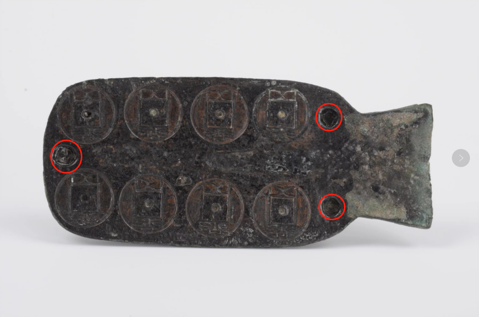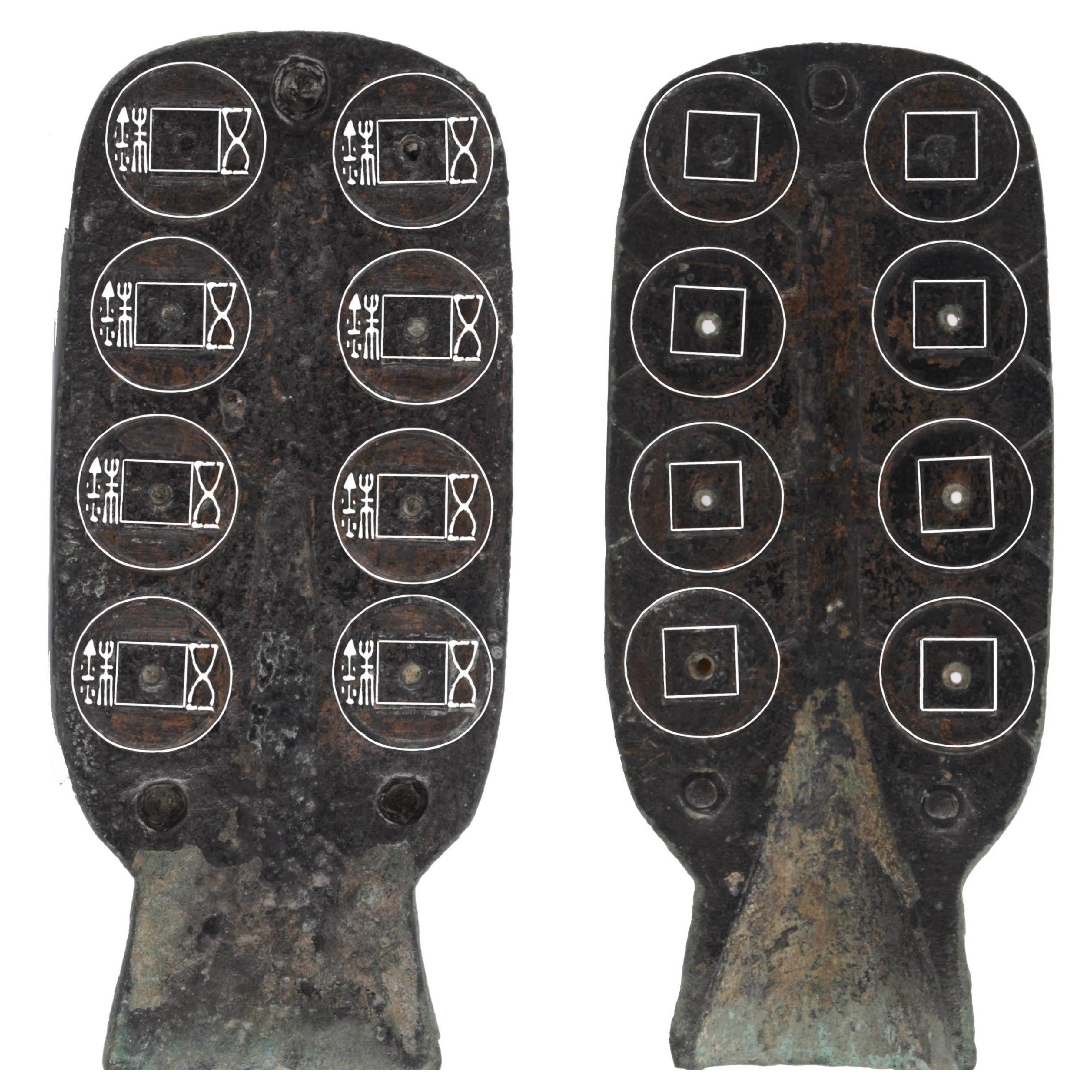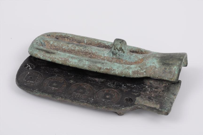 △东汉五铢钱铜范(左图为母范,右图为公范)