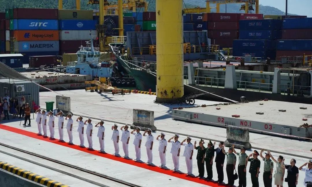 当日上午10时,越方在岘港码头举行了隆重的欢送仪式。中国驻越南公使郗慧、驻岘港总领事董碧幽、中资机构和华人华侨代表,岘港市外事厅副厅长、越方官兵代表到码头送行。