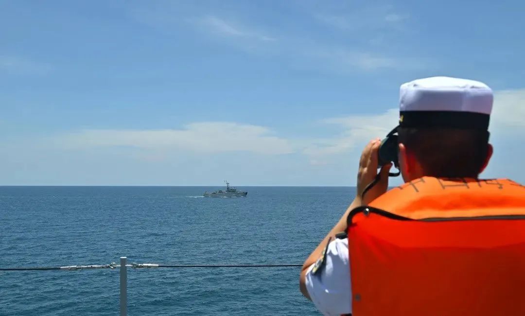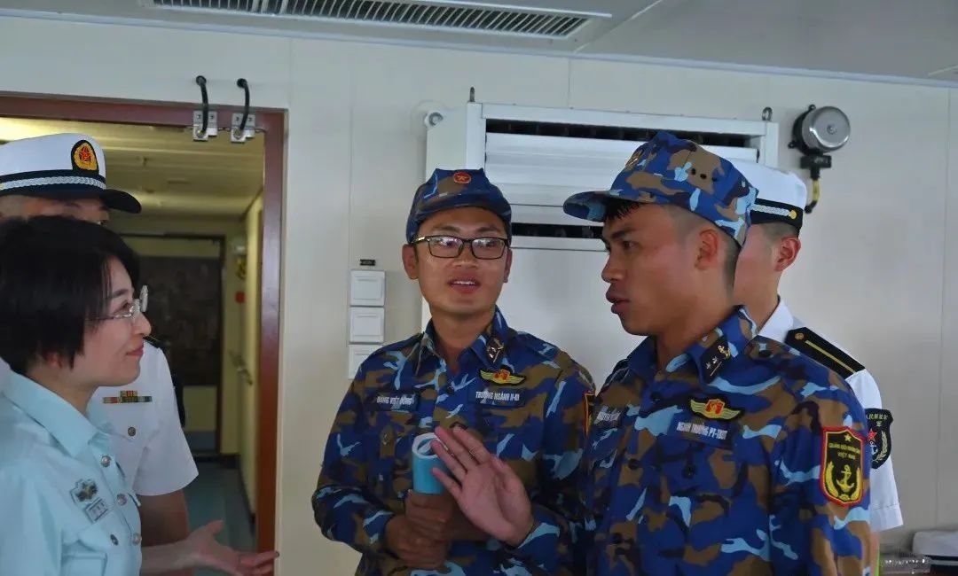 离港后,戚继光舰与越南海军舰艇举行了联合训练。