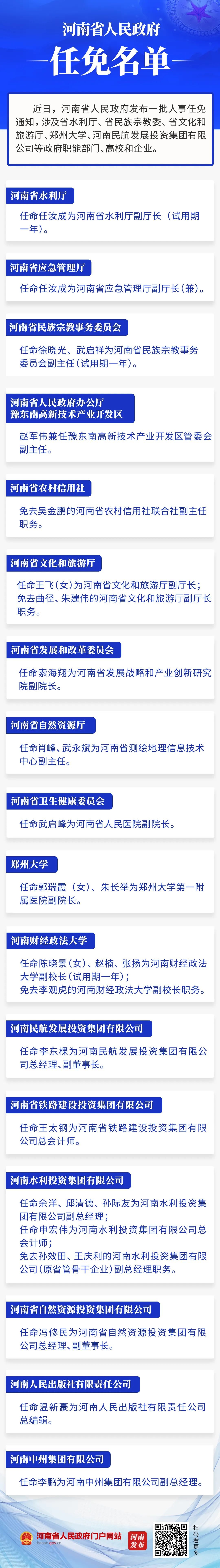 河南省政府新任免一批干部