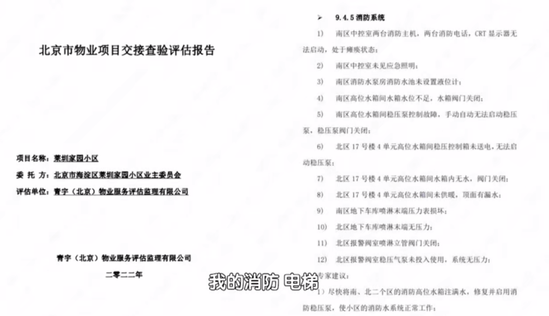 此外,一些业主认为,消防问题和物业维修管理不善有着脱不开的关系。无奈之下,万科物业拿出了入驻前对各项设施的验收报告为自己“洗冤”。