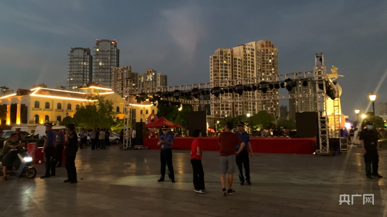 记者现场采访当地城管相关同志得知,此次演出活动已经取消,舞台设施正在陆续拆除撤离中,并对接近群众进行劝阻。