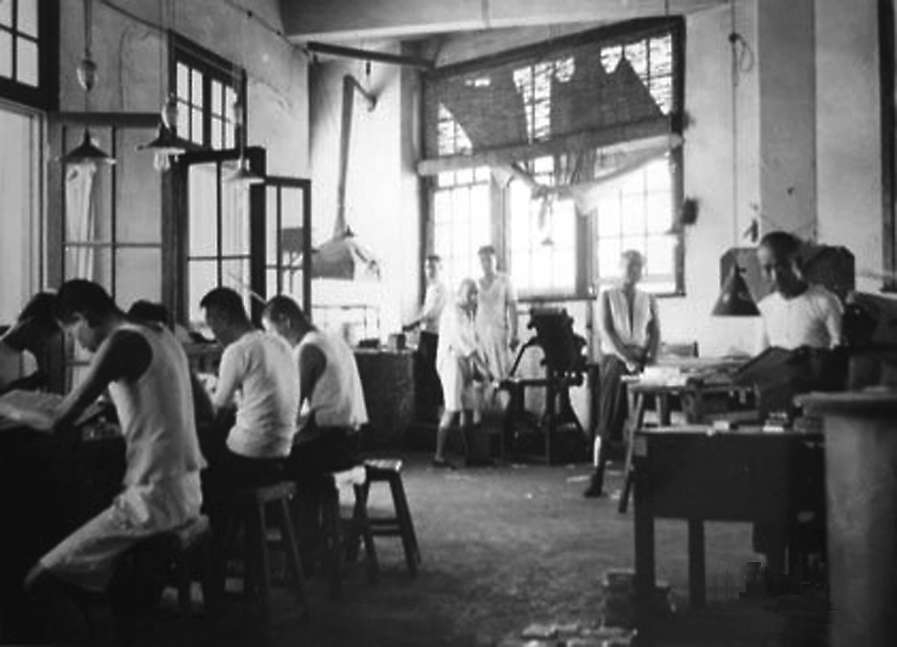 排版车间,排字工正在排字