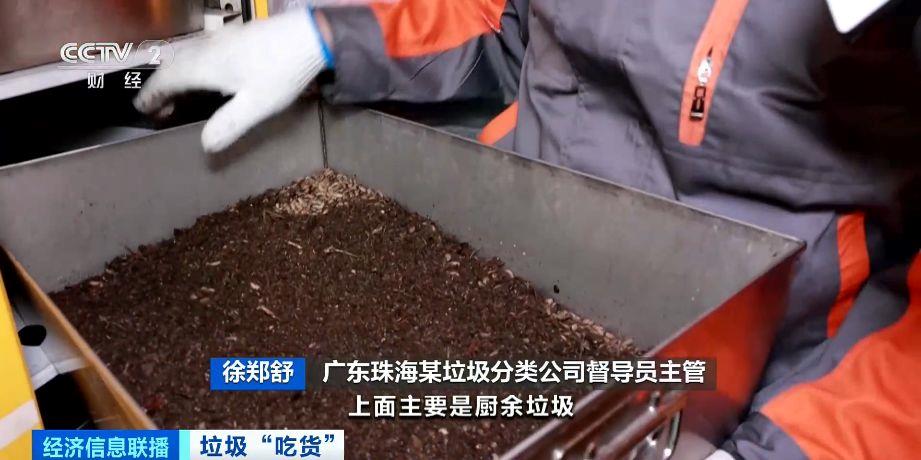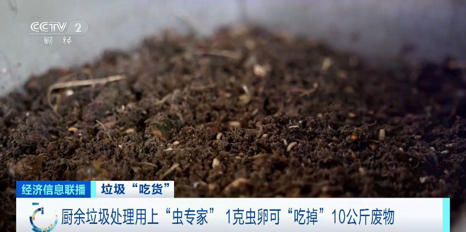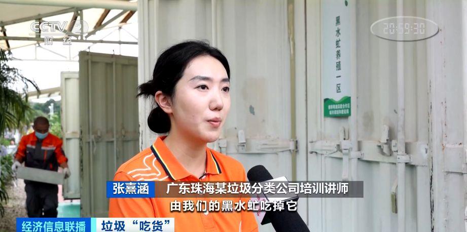 广东珠海某垃圾分类公司督导员主管 徐郑舒:上面主要是厨余垃圾,粉碎过后裹上了锯末和木屑,下面主要是黑水虻,它会将我们生活中常见的厨余垃圾吃掉转化成养分。