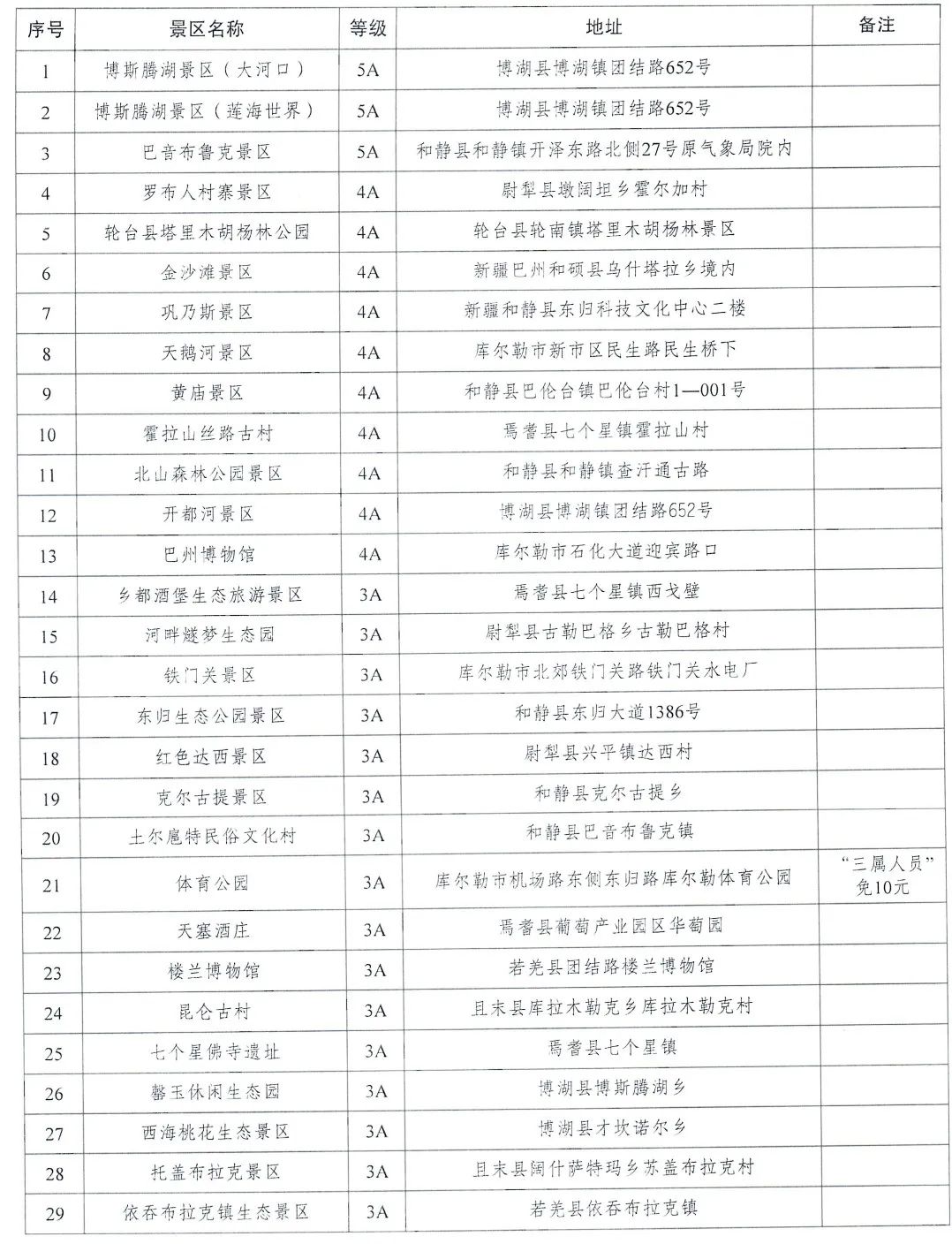 和免门票游览景区的通知》