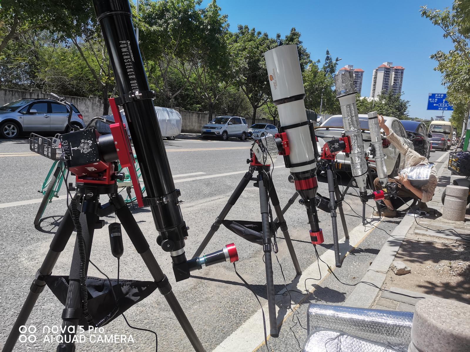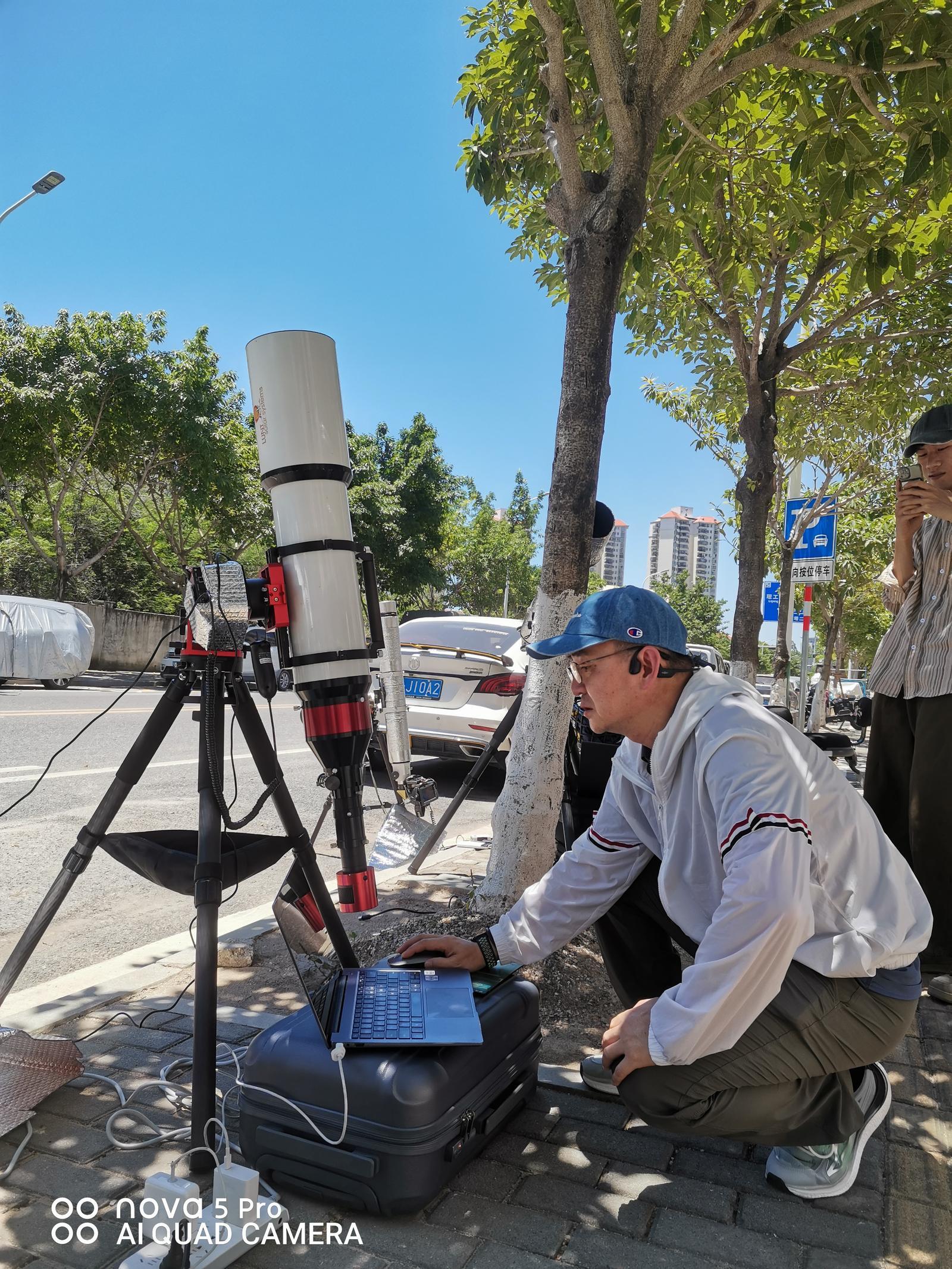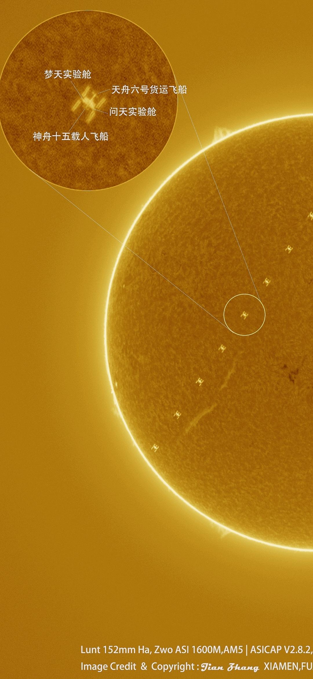 据了解,这次的凌日观测意义非凡,距离发射时间仅1.5小时左右。此次闽粤两地天文爱好者齐聚观测点,4套设备同时对准日面,其中有两套太阳色球望远镜对太阳的色球层,两套可见光天文望远镜对太阳的光球层,均拍到了我国空间站凌日现象。