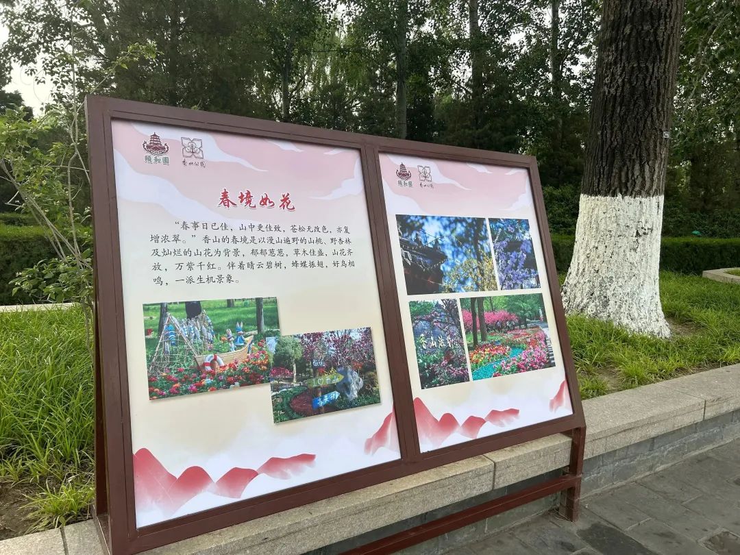 当您在颐和园漫步游览的时候,让您印象深刻的也许不仅仅是昆明湖、万寿山、佛香阁等美景,您可能还会被东堤旁的那些美丽的照片所吸引。“千年御苑 红色香山”——香山公园四季风光图片展今天在颐和园管理处的大力支持下,正式在颐和园东堤亮相。展览中的图片会让您觉得仿佛置身于一个充满诗意、风景如画的世界之中。历史悠久而丰富多彩的香山公园以另一种不同的方式展现给了更多海内外游客。