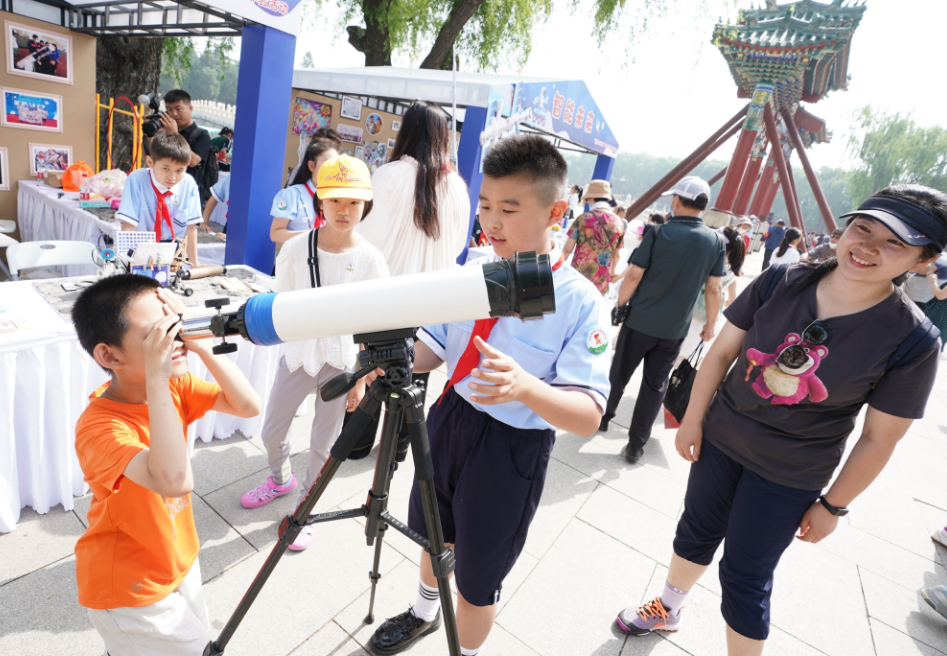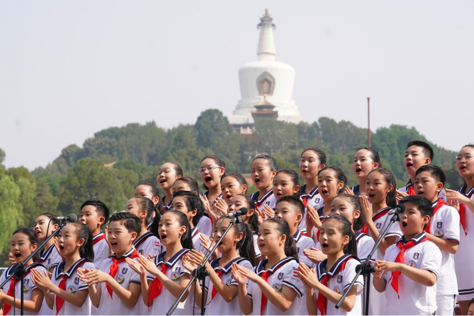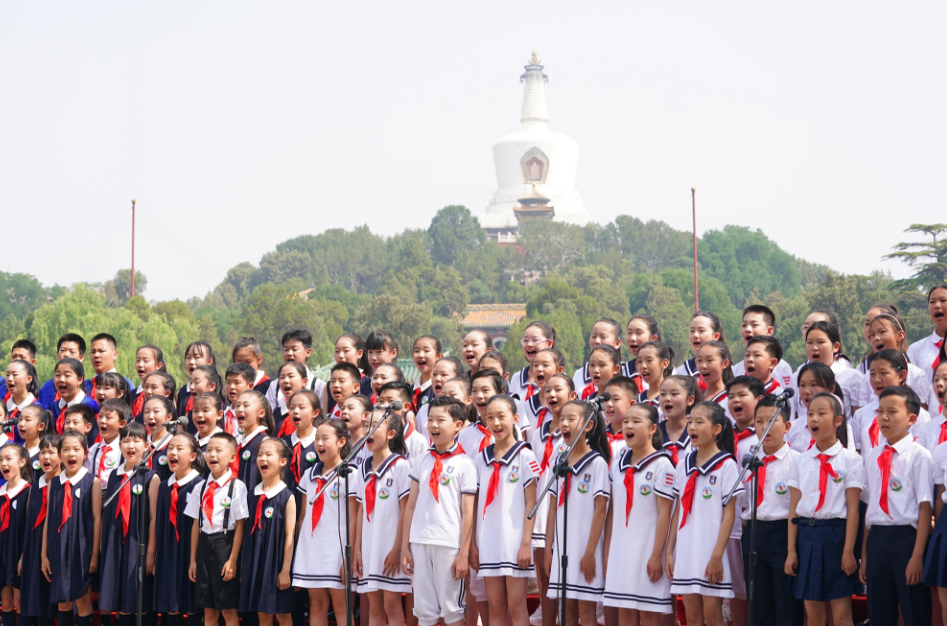 “海面倒映着美丽的白塔,四周环绕着绿树红墙……”6月1日上午9点,这首在北海公园采风完成的经典歌曲《让我们荡起双桨》 诞生60多年后,旋律又一次飘荡在北海公园上空。碧波、白塔、美妙旋律的映衬下,300余名少先队员在永安桥畔广场寻访红色印记,体验非遗技艺,开展丰富多彩的体育项目。园区内一派生动活泼、朝气蓬勃的景象。