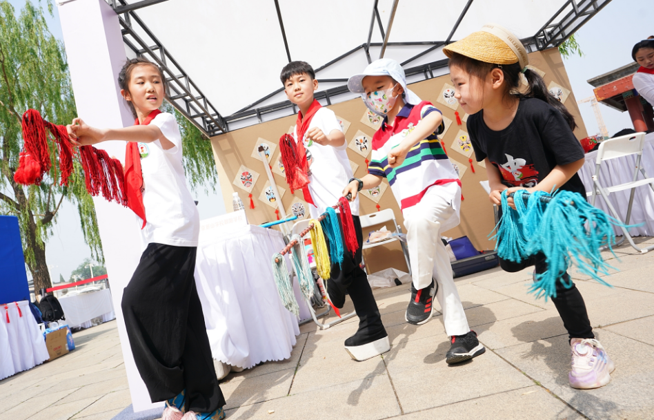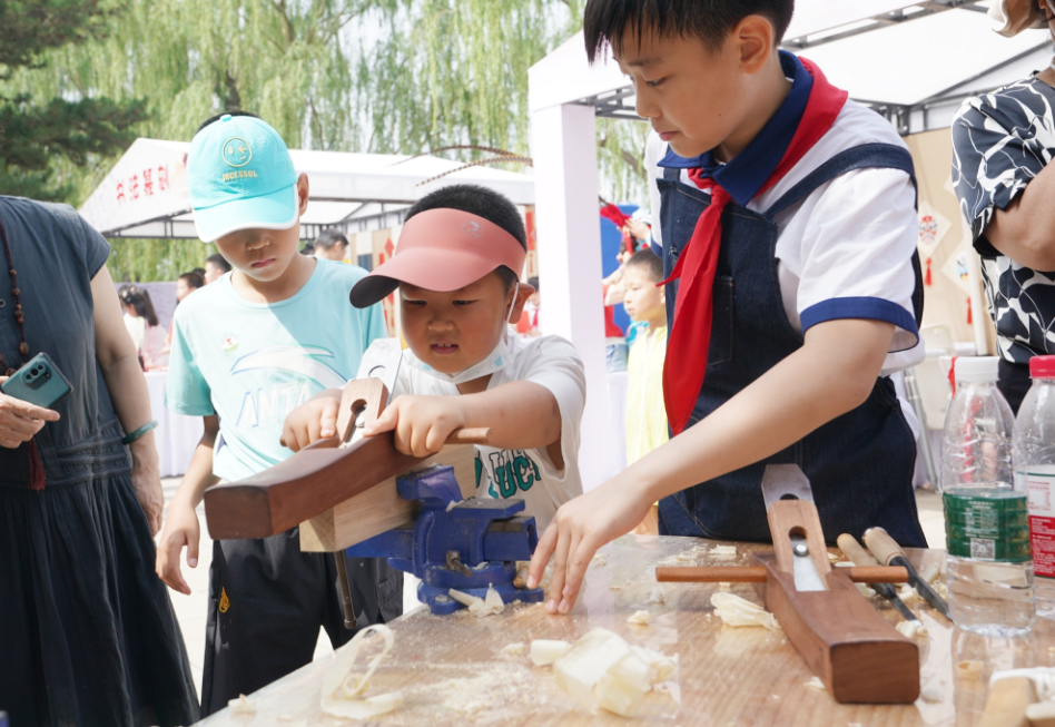 据了解,今天上午,不同学校少先队员组成的5个非遗文化传承中队在北海公园广场开展实践体验活动。在非遗传承人校外辅导员的带领下,除了唱京剧,听知识科普,孩子们有的认真学习景泰蓝、榫卯的制作方法,有的尝试传统剪纸、书法篆刻非遗技艺……大家纷纷表示,在实践体验中感受了中华优秀传统文化的深厚魅力。