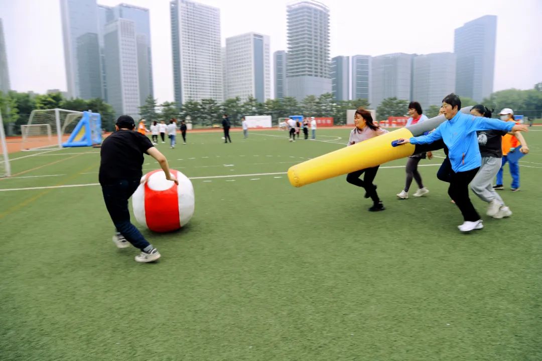 趣味项目比赛环节设置有旱地龙舟、雷霆战鼓、足球九宫格、定点投篮等8个项目。比赛过程中,各参赛队员团结协作、全情投入,共同享受趣味运动带来的欢乐。经过比拼,最终运河湾社区、运河园社区、京贸家园社区分获比赛前三名。
