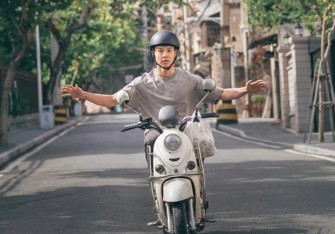 尹昉记得,拍摄的第一场戏是片中戴春骑摩托车的戏。这时他和觉晓已经相爱,他们从康复中心出来后组建了家庭,开始了向往的新生活,但骑车过程中他把手松开了,结果从摩托车上摔了下来。“虽然这场戏很简单,对剧情的推进也不是重点,但是要呈现出很丰富的层次:离开康复中心的‘安全港’,驶向了社会的大海中,这对情侣既紧张局促又兴奋期待,他们勇敢去拥抱‘正常生活’,摔倒了也很高兴,就当是生活的一种调味。这些意象要很自然不着痕迹地融化在一个很短时间的过程里,变成一种很本能的表演状态。”这场戏拍了很多很多遍,因为要跟机器和道路的情况配合,也让尹昉在一遍遍地撒手骑行中“驶向了戴春”。