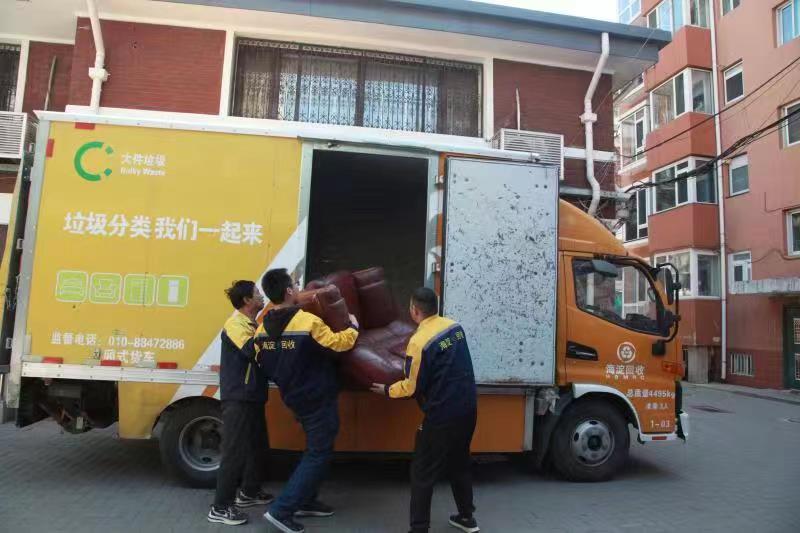 从居民家中或社区大件垃圾临时存放点到街道大件垃圾中转站进行暂存,再到海淀区再生资源回收分拣加工中心进行终端处理,大件垃圾完成了它的资源化回收闭环之旅。“目前中转每天平均可回收大件垃圾约452件,低值可回收物约23吨,有害垃圾约17.9公斤。”海淀区物资回收公司相关负责人说。