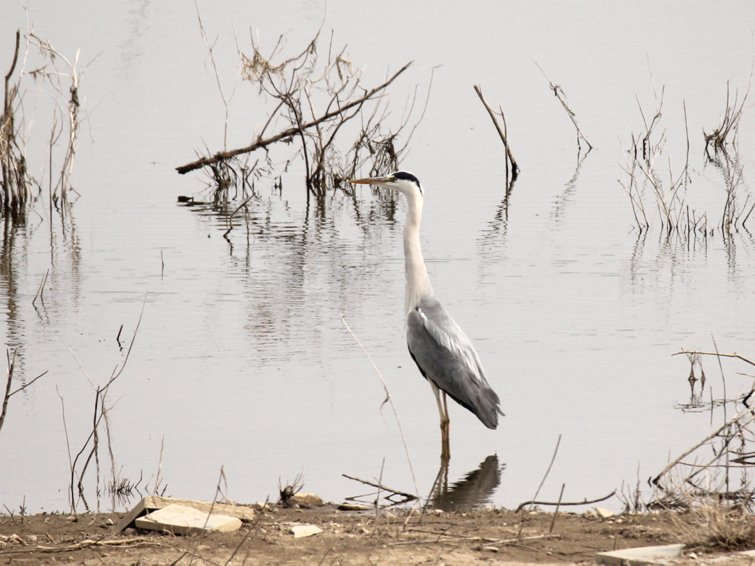 灰鹳在唐指山水库栖息。