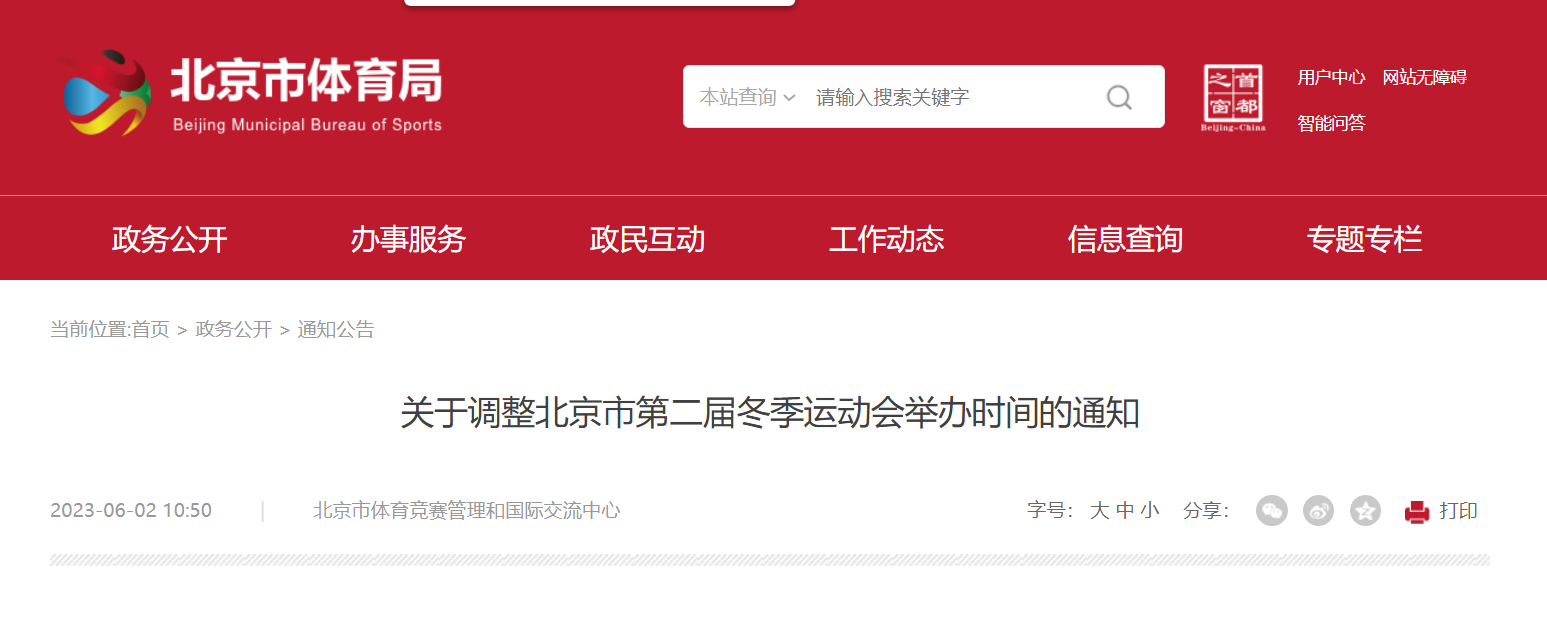 据北京市体育局6月2日消息,因疫情等原因延期的北京市第二届冬季运动会将于2023年9月至12月举办。