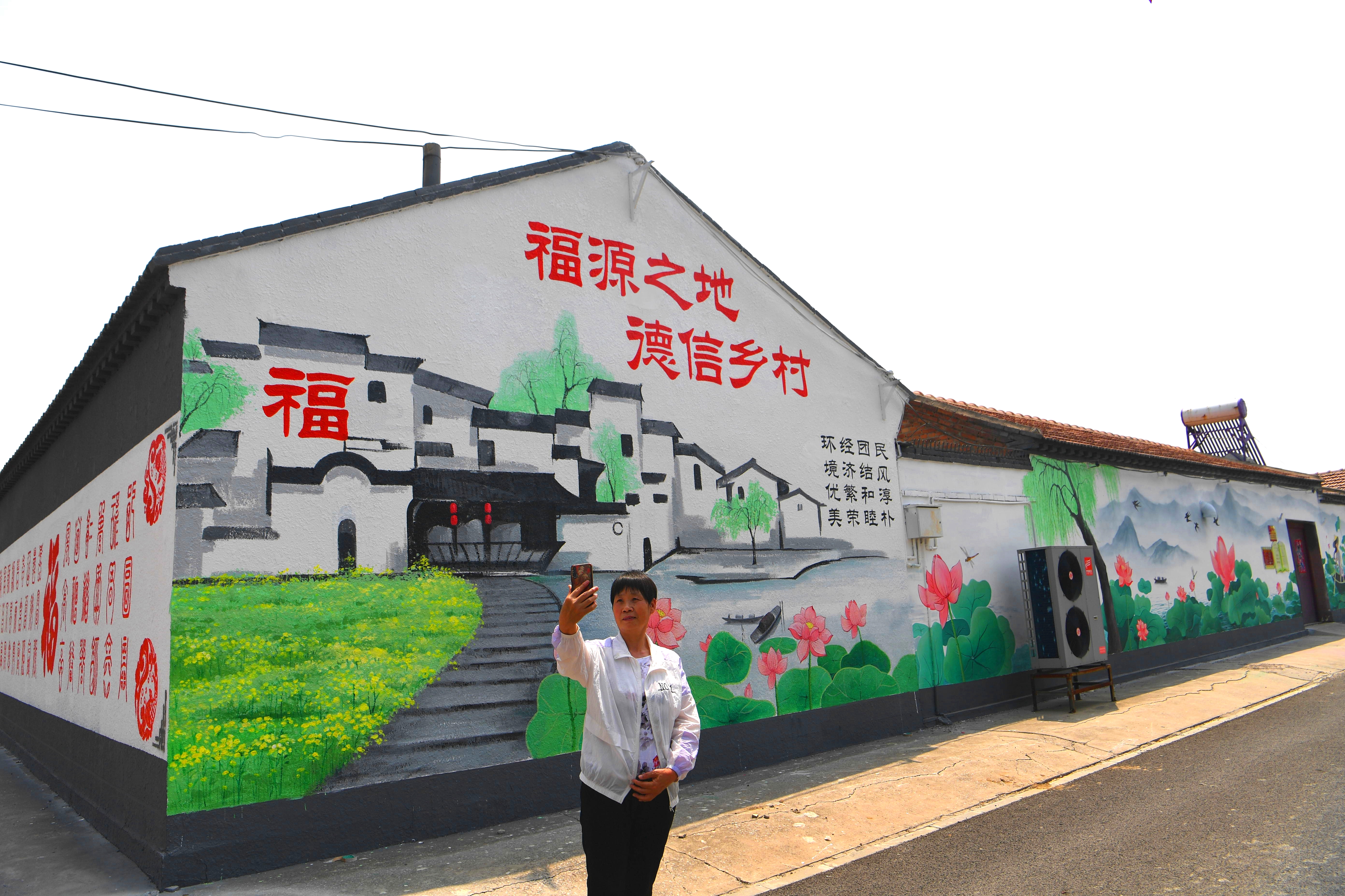村委会请来专业美术老师,对墙体进行整体彩绘。目前,村内各主要街景彩绘艺术总计18幅,面积超1000平方米,包括沙滩美景、卡通人物、富贵牡丹等多元素图案,村民各家各户门前绘制的大型“福”字180幅、小型“福”字500幅成为一大亮点,为村庄增色不少。