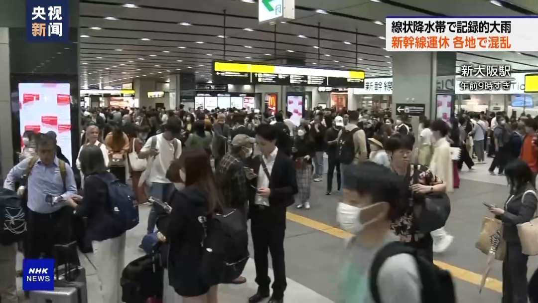 受强降雨影响,日本多地新干线运营陷入混乱,东京与大阪、名古屋等地间的新干线一度停运,有旅客滞留在新干线车内超过10小时。