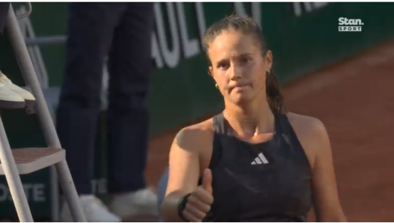 卡萨特金娜输掉比赛后向对手竖起大拇指 图自《悉尼先驱晨报》视频截图
