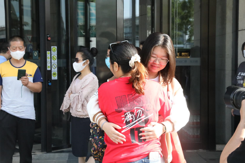 家长与考生相拥