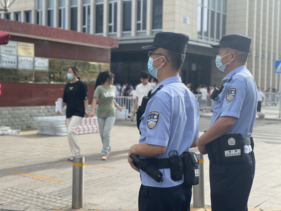 派驻警力对考点进行执勤保障,加强周边道路集散高峰疏导和交通秩序维护,严防车辆排队拥堵和临时上下客造堵,确保周边交通秩序良好。