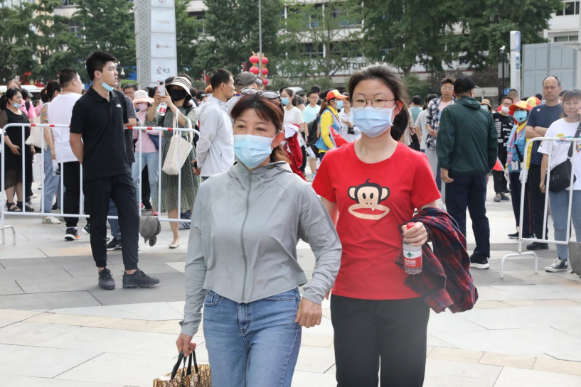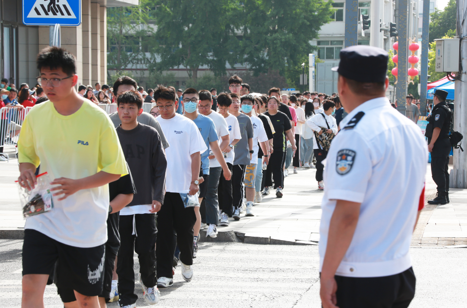 来到考点外等候入场