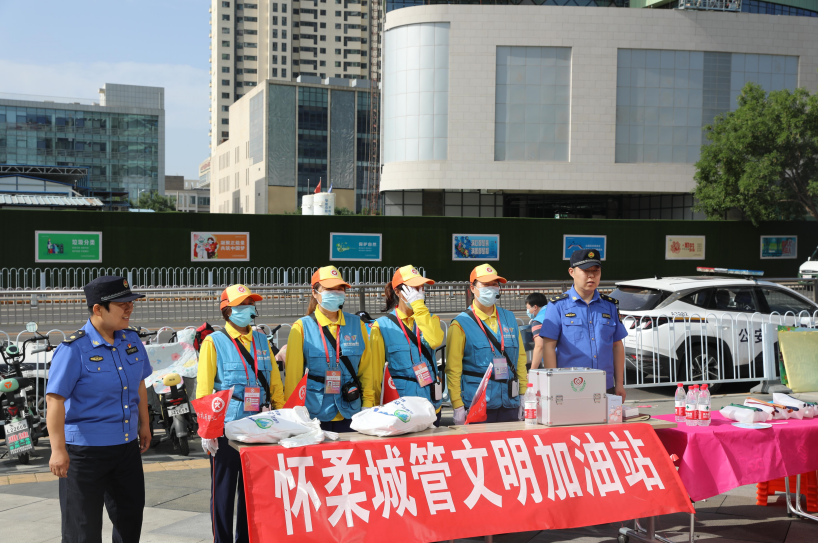 区城管执法局龙山街道执法队在怀柔一中考点旁设置“怀柔城管文明加油站”,为高考考生提供便民服务。高考期间,分别于每日7:00,13:00安排人员到位,每日共计3名执法队员常驻值守,为考生及送考家长发放矿泉水、凉扇等保障物资。同时,也为考生及家长提供指路、信息咨询、便民打气筒、针线盒等便民服务,尽最大力度保障怀柔考生顺利参加高考。