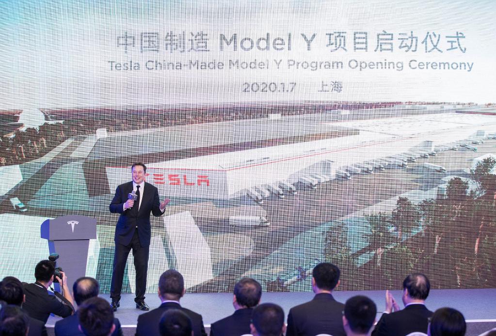 2020年1月7日,在特斯拉上海超级工厂,特斯拉首席执行官马斯克出席中国制造Model Y项目启动仪式。新华社记者丁汀摄