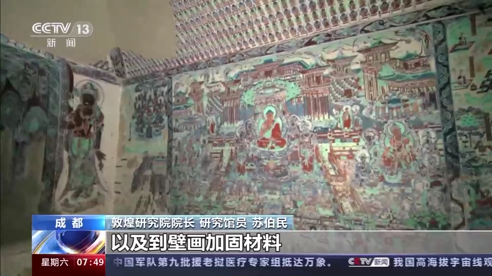 敦煌研究院院长 研究馆员 苏伯民:在三年多的研究过程当中,我们开展了从材料的分析,一直到环境的研究和控制,以及到壁画加固材料以及微生物防治等等方面综合技术的研究,目前所取得的这些成果所形成的这样一个技术体系,一定会为我们国家墓葬壁画未来的发展或者墓葬壁画的保护提供非常有力的技术方面的一些保障和支撑。