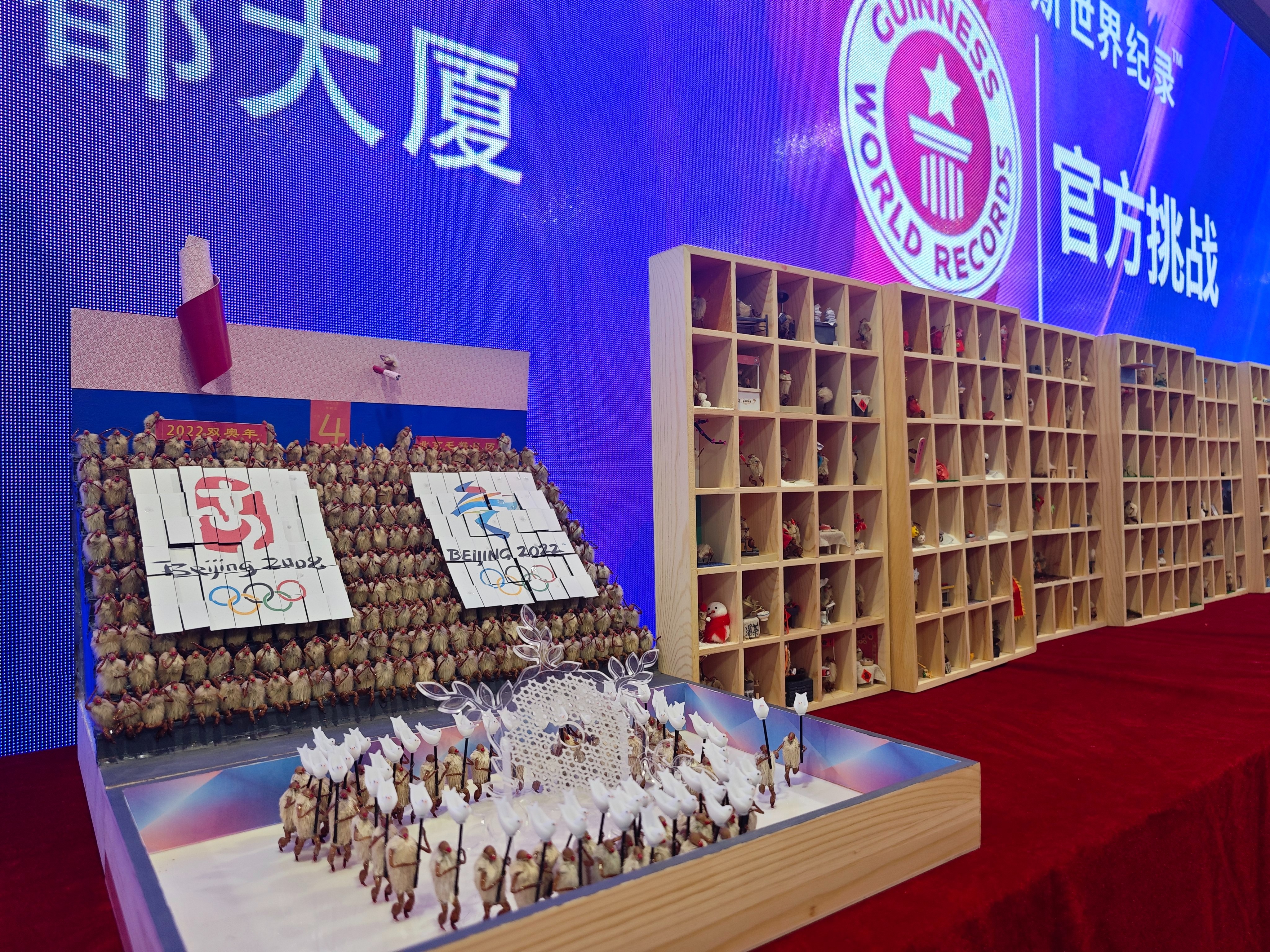 在韩僖僖灵巧的双手中,毛猴表现的场景非常丰富:既有单板滑雪、冰壶等冬奥健儿的拼搏时刻;又有中秋节、重阳节等民俗节日;还有拔河、舞龙、划龙舟等瞬间。经过工作人员的现场清点,韩僖僖成功挑战“最大规模的毛猴展”吉尼斯世界纪录。