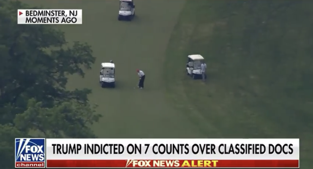 福克斯新闻网9日报道起诉书被解封时介绍,早些时候特朗普在打高尔夫球。