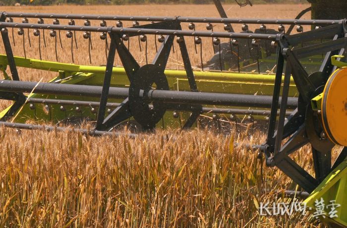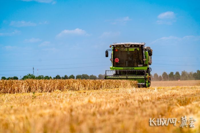 联合收割机正在收割小麦。长城网·冀云客户端记者 康义涵 摄