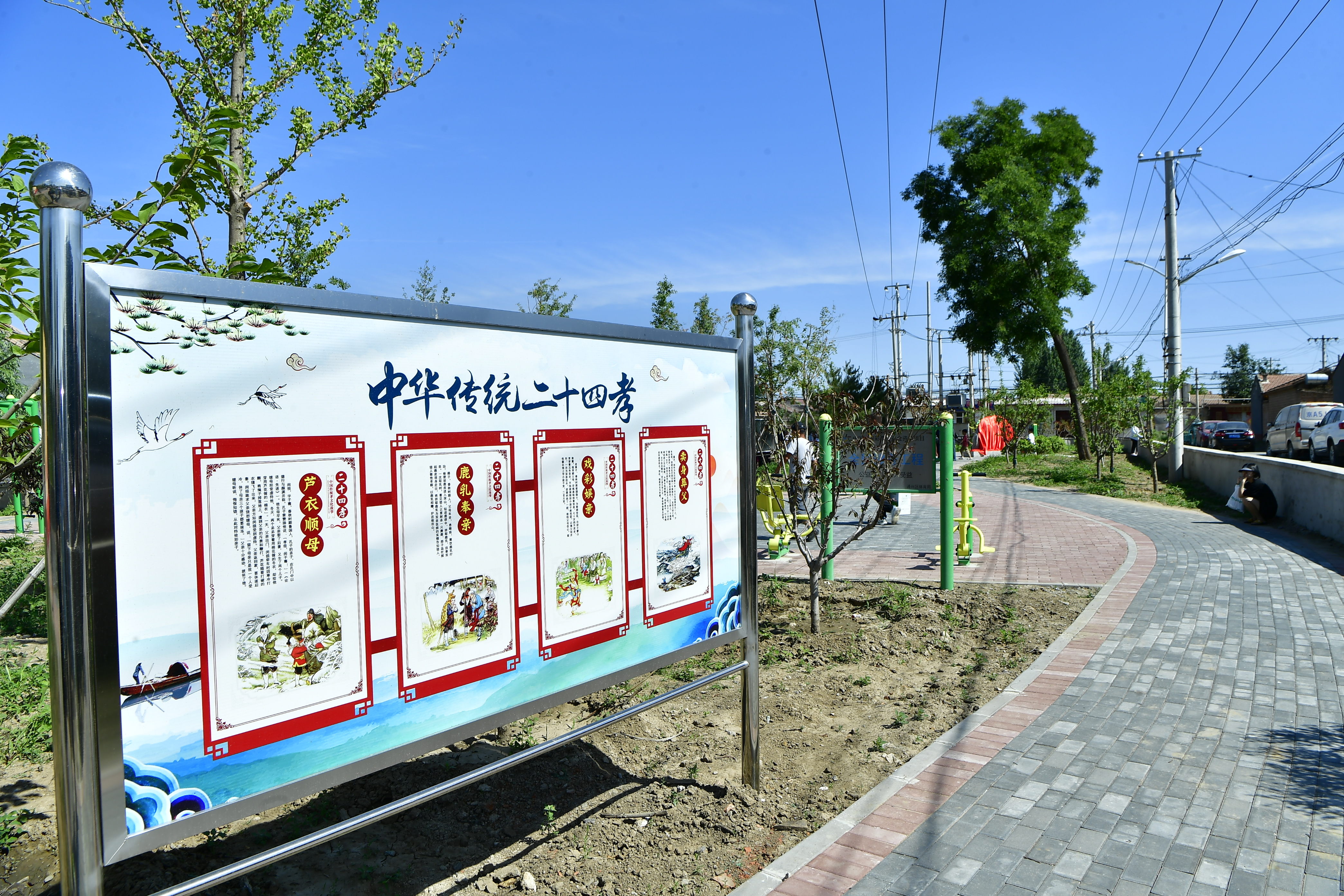 新修后的小公园还安装了文化传统展示牌。唐建/摄