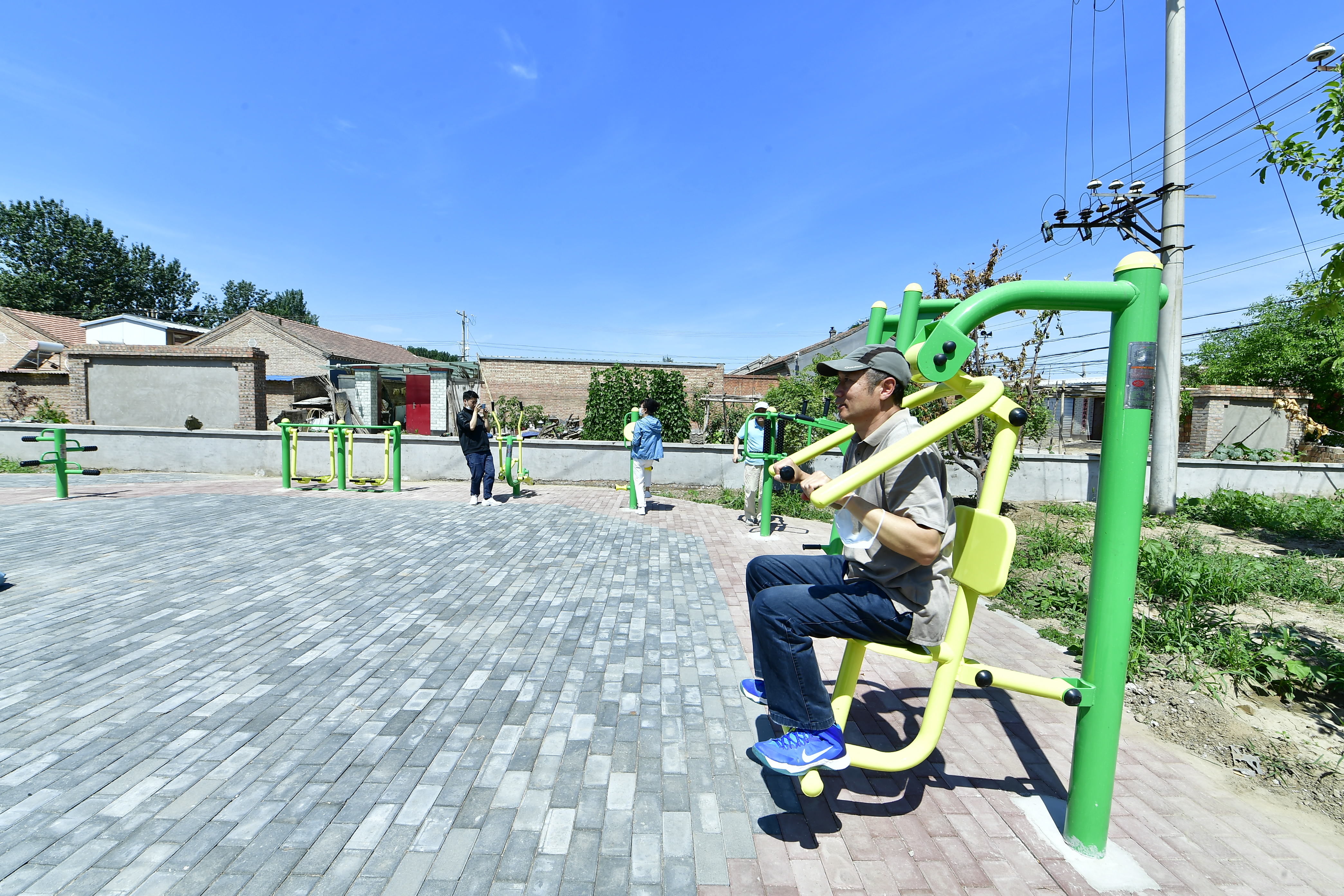 村民在健身器材上锻炼身体。唐建/摄
