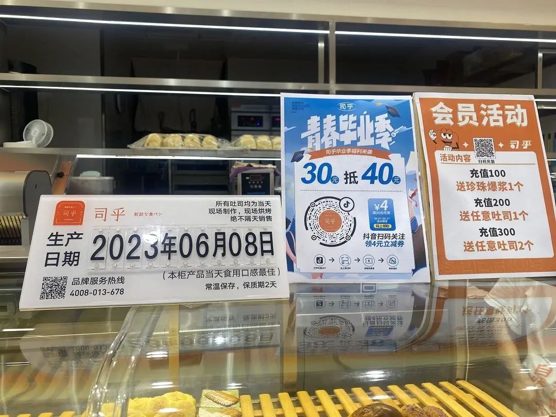 6月8日下午,记者在位于福州市八一七路的司乎吐司店看到,店内柜台上的日历招牌标示当天日期为“2023年06月08日”,还标注“所有吐司均为当天现场制作,现场烘烤,绝不隔天销售”。